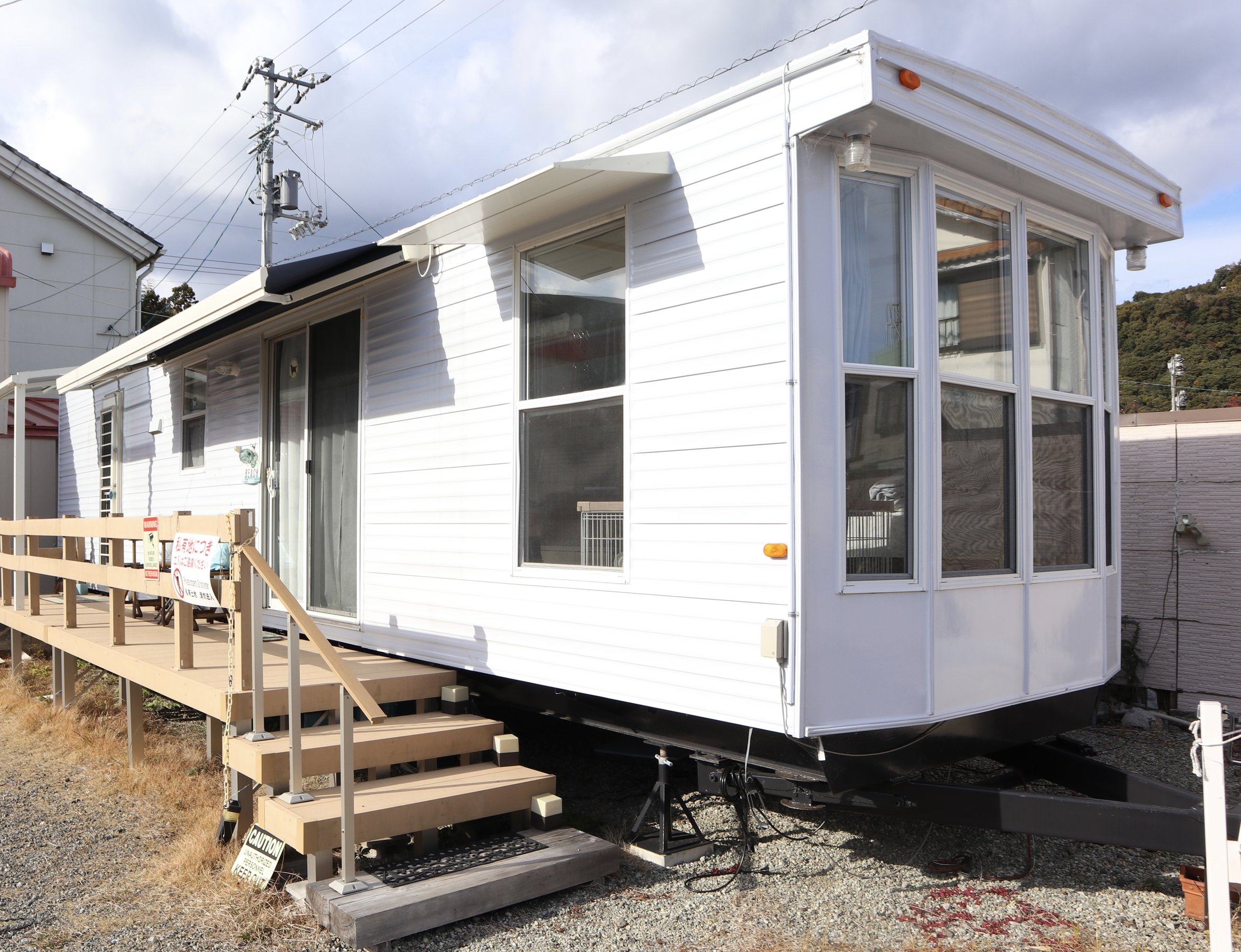 淡島シーサイドコテージでは、おしゃれなトレーラーハウスに宿泊できます。